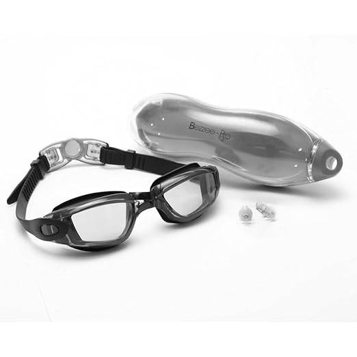 Gafas de Natación Profesional por Bezzee Pro - Lentes Transparentes - Anti Niebla - Hermético - Ajustable - 100% Garantía De Devolución De Dinero - Gafas de Natación Para Adultos Con Visión De 180 Grados - Lo Mejor Para Hombres, Mujeres, Niños Y Jóvenes de Mas de 10 Años Incluye Estuche Protector Premium GRATUITO y Tapones Para Los Oídos