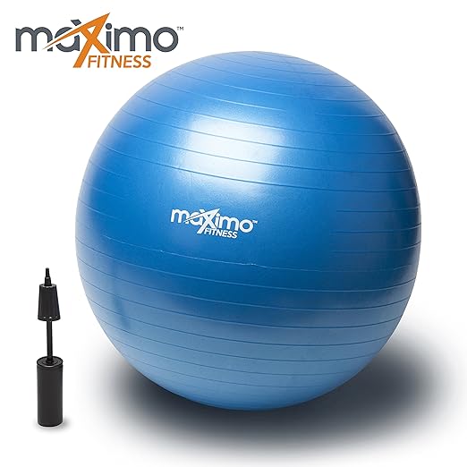 Pelota de Ejercicio / Bola Suiza con Bomba de Inflado Manual de Maximo Fitness | Calidad Superior | Perfecta para Entrenamientos de Equilibrio, Mantenimiento, Body Balance, Pilates, CrossFit | Anti-Estallidos | Material PVC Antideslizante | 65cm.