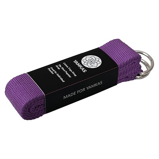 La correa de yoga viene dentro de una bolsa de plástico, enrollada y sujeta con un cartón en el que, por detrás, vienen ejemplos de cómo usarla.