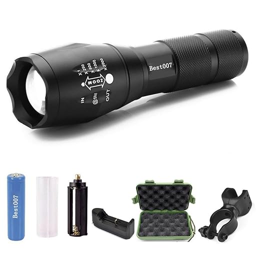 Best 007 Linterna LED (1000LM) de Mano Resistente al Agua con Batería Recargable y 6 Accesrios Diferentes Ultra, con 5 Modos, Perfecta para Ciclismo,Camping, Montañismo